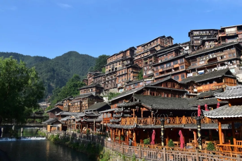 向“黔”進(jìn),必進(jìn)鎮(zhèn)遠(yuǎn)。舞陽(yáng)河呈S型穿城而過(guò),將鎮(zhèn)遠(yuǎn)古城一分為二,府衛(wèi)城各有故事,各有精彩。自古是軍事及商業(yè)要塞的鎮(zhèn)遠(yuǎn),與很多古鎮(zhèn)不同,臨街的樓房雖是新式樓房,但仍然保留著古典“徽派”的建筑風(fēng)格。順著老街的小巷觀賞古鎮(zhèn)的古老建筑,一定要見(jiàn)識(shí)下傳說(shuō)中的“歪門(mén)斜道”。這里的民居大門(mén)的朝向都是歪的,不與街道巷道平行,而且巷道也是七扭八拐的。這特別的建筑風(fēng)格據(jù)說(shuō)是來(lái)自風(fēng)水師的告誡,目的是為了藏風(fēng)聚氣。也似乎讓鎮(zhèn)遠(yuǎn)古鎮(zhèn)更有歷史韻味,讓人嘆為觀止。